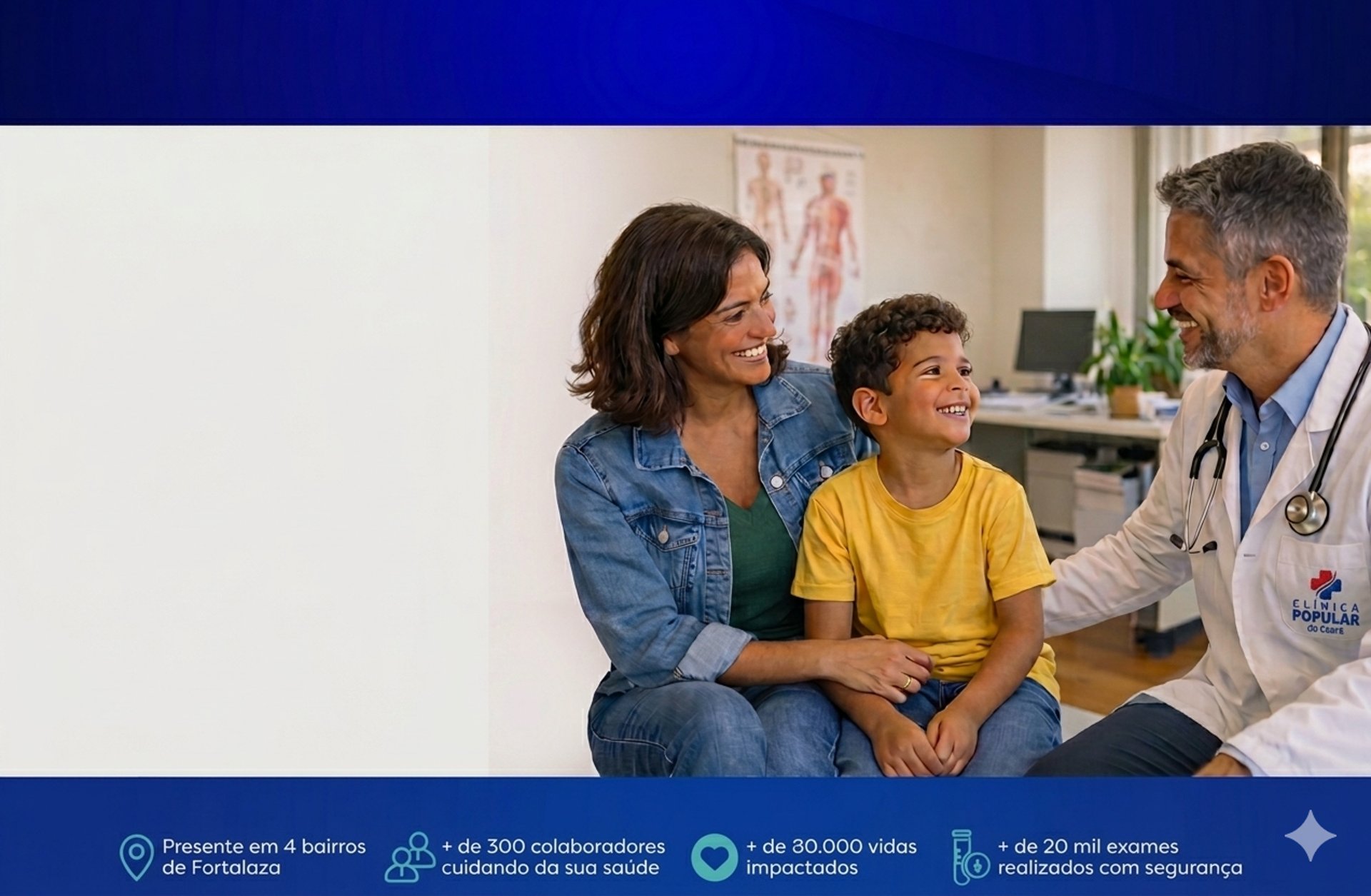 A Clínica Popular do Ceará nasceu com esse propósito: oferecer atendimento médico de qualidade, com diversas especialidades e uma ampla gama de exames laboratoriais, ultrassonografias e ecocardiogramas, tudo com preços acessíveis e sem burocracia.